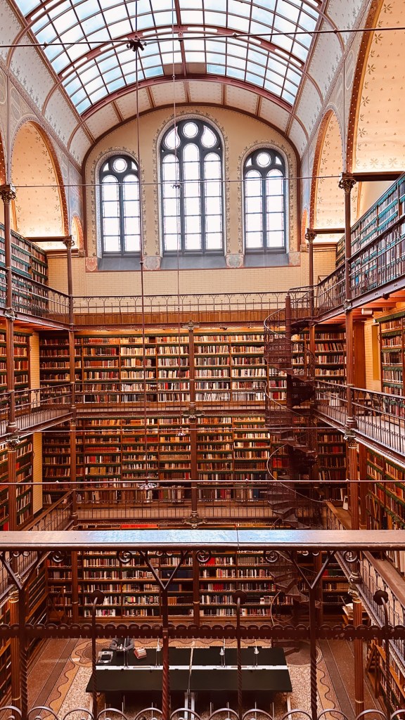 Bibliotheken sind für mich besondere Orte mit einer einzigartigen Atmosphäre. Das Foto zeigt die Rijksmuseum Research Library in Amsterdam, auch als Cuypers Library bekannt. Sie ist die größte und älteste öffentliche Kunstgeschichtsforschungsbibliothek der Niederlande und Teil des Rijksmuseums. Die Sammlung, die mehr als 400.000 Monografien, 3.400 Zeitschriften und 90.000 Kunstauktionskataloge umfasst, spiegelt das Profil des Museums wider. Jährlich wächst die Sammlung um durchschnittlich 10.000 bis 15.000 Bücher, Auktionskataloge und Zeitschriften.